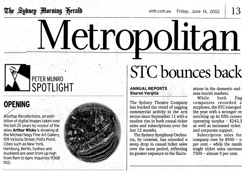 This media snippet of Peter Munro from the Sydney Morning Herald, announces the opening of the Notes for the Solstice Voyeur (global images)
