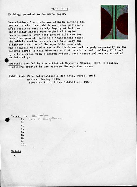 This Note relates to the print Blue Bird, 1967