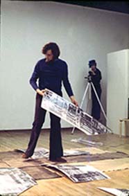 Performed in Hamburg as part of the Performance Woche - a excursion into European tribalism; repeated as a video work in the same space, 1983.